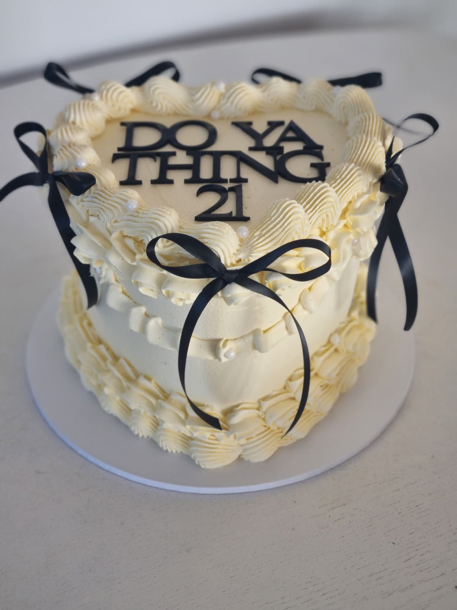 Our frilly heart vintage cake feeds 40 coffee serves or 20 dessert serves and is an 8inch cake.