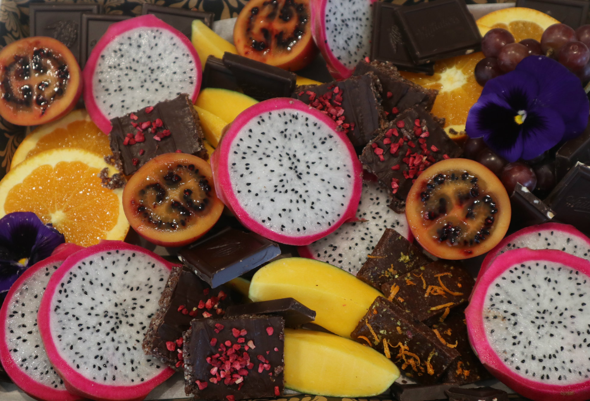 Gluten-free, dairy-free, vegan and delicious homemade treats, fresh fruit – and of course, chocolate! We wholeheartedly believe in living a balanced lifestyle, which is this platter has a bit of everything!